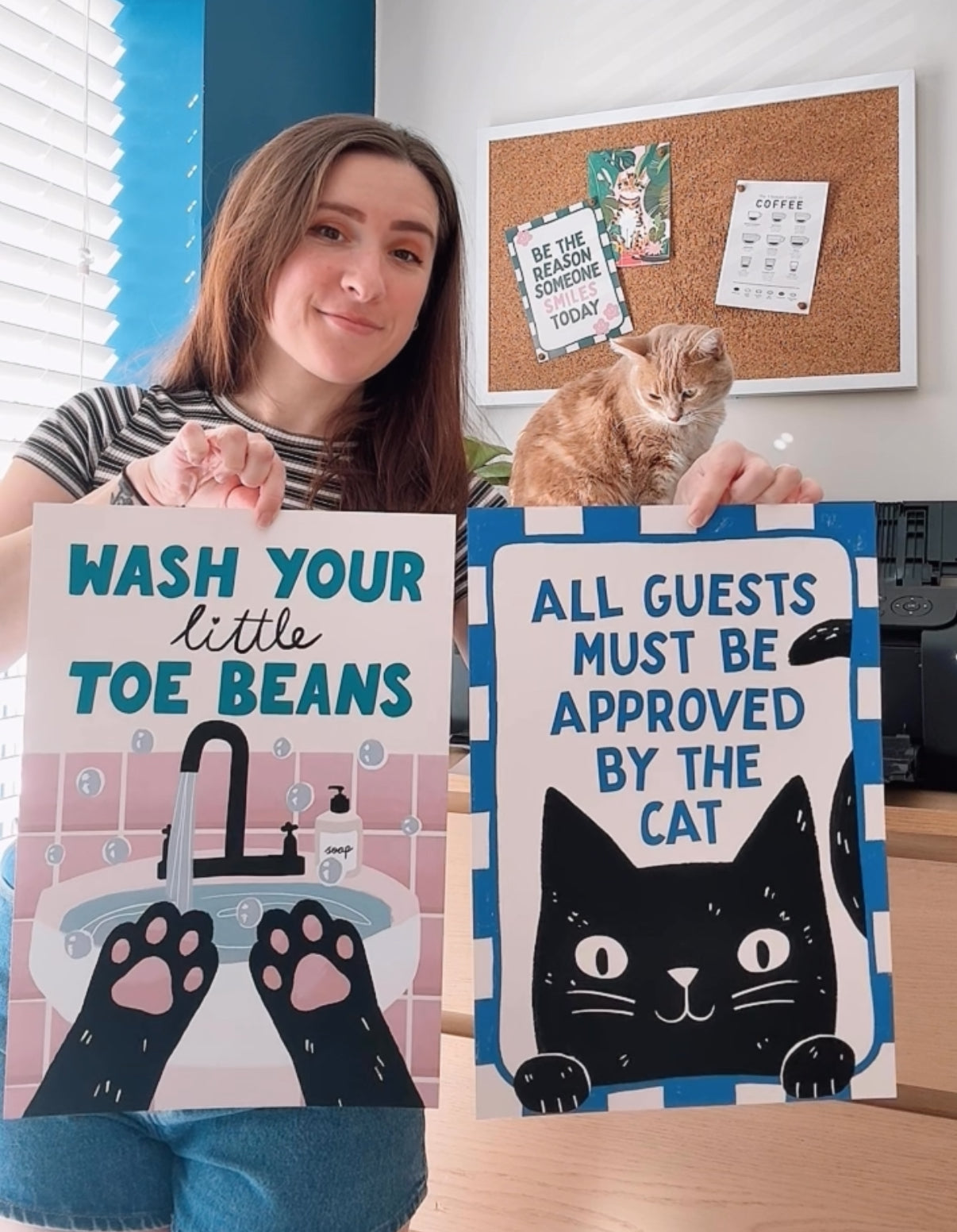 I am way too much of a crazy cat lady to have an about section without showcasing my three little helpers - meet Mochi, Daisy and Monkey! Together, they keep me company while I work every day, and they inspired my best-selling custom cat window print <3