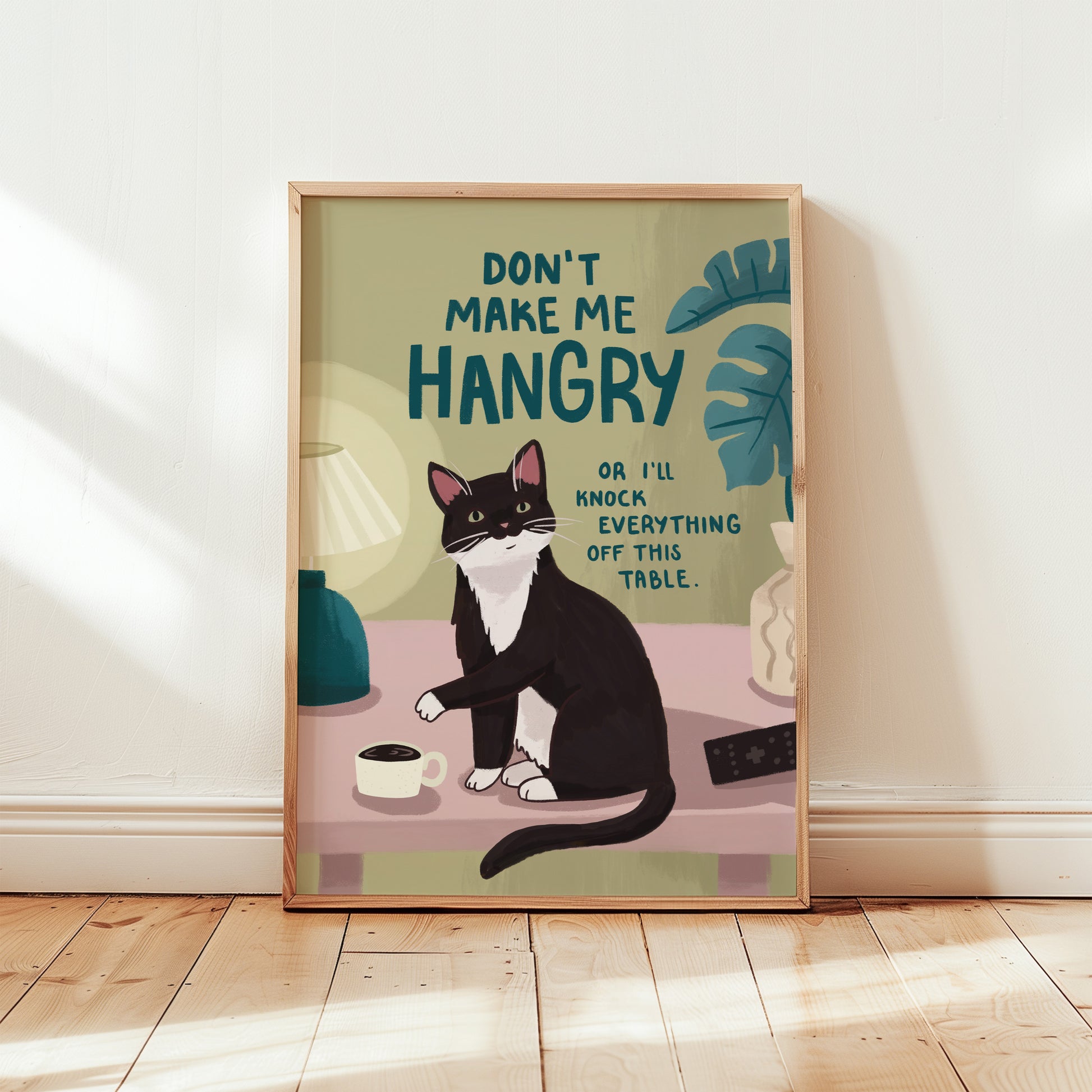 Featuring bold colours, cosy living room vibes, this Don’t Make Me Hangry art print is made for those who know the wrath of a hungry cat (or human).