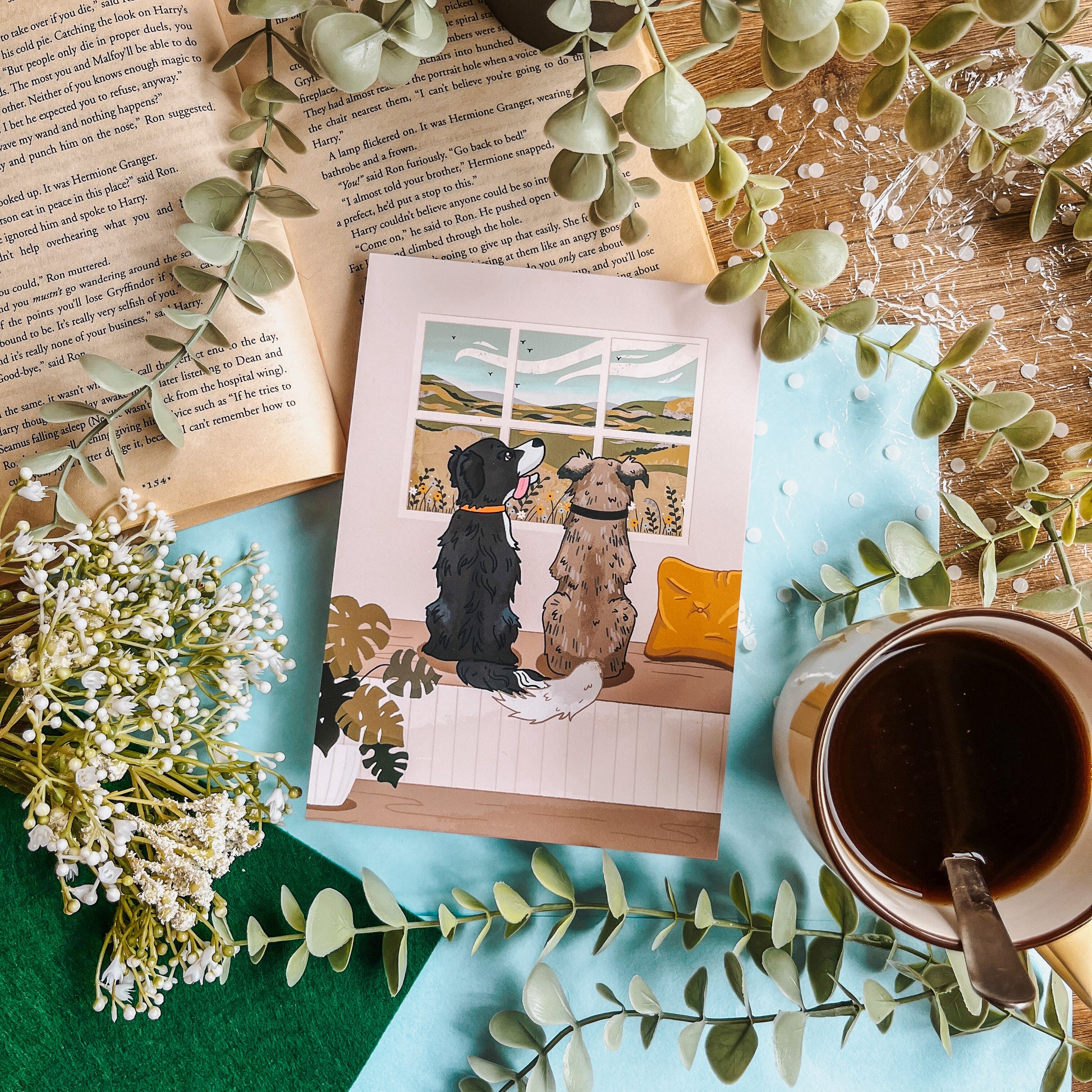 Personalised Dogs Watching the Birds Outside the Window Print (unframed)