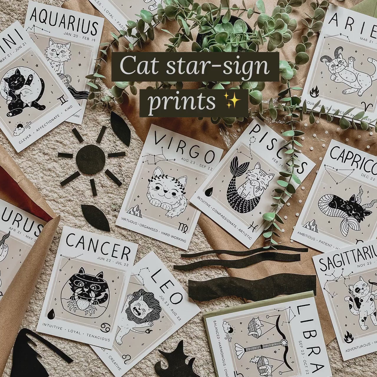 This gorgeous contemporary illustrated Virgo zodiac print, with a cat theme makes a perfect gift for astrology-obsessed cat-lover friends and family! It looks beautiful in any room of the house and is available in a series of colours.