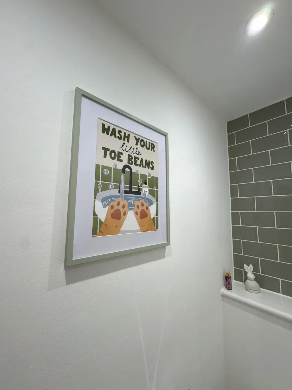 Transform your bathroom or laundry space into a cat-friendly, cozy haven with this adorable “Wash Your Little Toe Beans” print! Featuring a pair of sweet kitty paws soaking in a bubbly sink, this playful design is perfect for cat lovers, pet parents, and anyone who adores aesthetic and fun home decor.